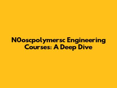 N0oscpolymersc Engineering Courses: Your Comprehensive Guide