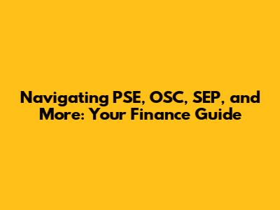 Navigating PSE, OSC, SEP, And More: Your Finance Guide