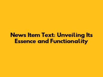 News Item Text: Definition, Purpose, And Examples