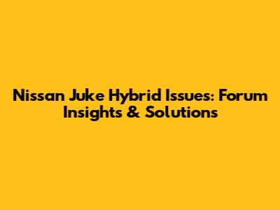 Nissan Juke Hybrid Issues: Forum Insights & Solutions