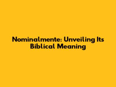 Nominalmente: Unveiling Its Biblical Meaning