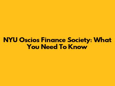 NYU Oscio's Finance Society: What You Need To Know