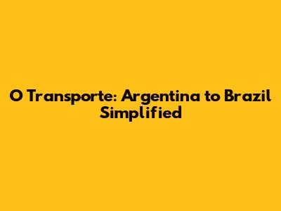 O Transporte: Argentina To Brazil Simplified