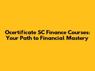 Ocertificate SC Finance Courses: Your Path To Financial Mastery