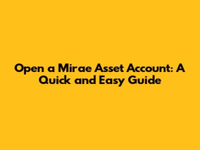 Open A Mirae Asset Account: A Quick And Easy Guide