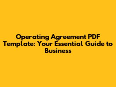 Operating Agreement PDF Template: Your Essential Guide
