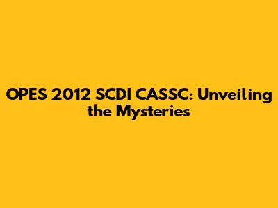 What Exactly is OPES 2012 SCDI CASSC?