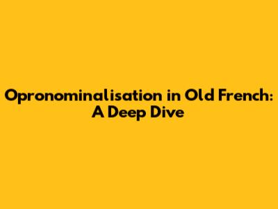 Opronominalisation In Old French: A Deep Dive