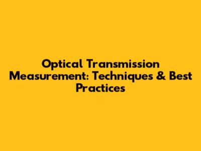 Optical Transmission Measurement: Techniques & Best Practices