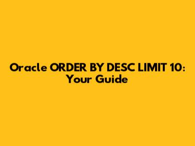 Hey there, data enthusiasts! Ever found yourself swimming in a sea of information, desperately trying to fish out the top 10 most recent entries or the highest-paying customers? Well, if you're working with Oracle databases, you're in luck! Today, we're diving deep into the ORDER BY DESC and LIMIT 10 combo, a powerful duo that lets you precisely pluck those top results. This guide will be your friendly companion, breaking down everything from the basics to some neat tricks to make your data wrangling a breeze. Let's get started, shall we?