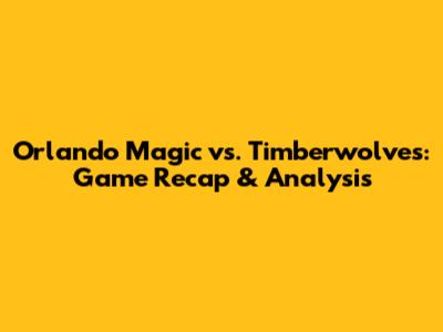 Orlando Magic Vs. Timberwolves: Game Recap & Analysis