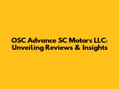 OSC Advance SC Motors LLC: Unveiling Reviews & Insights