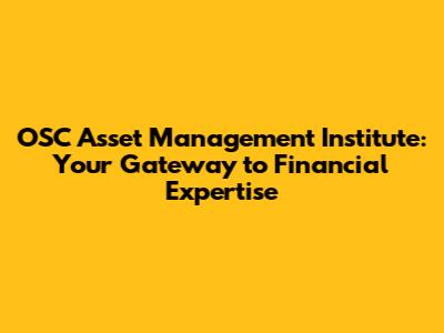 OSC Asset Management Institute: Your Path To Financial Mastery