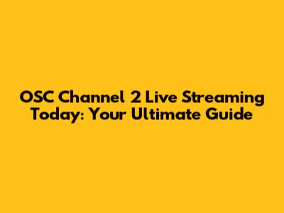 OSC Channel 2 Live Streaming Today: What You Need To Know