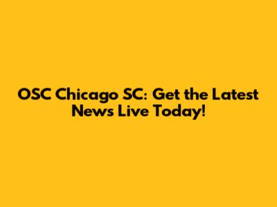 OSC Chicago SC: Get The Latest News Live Today!