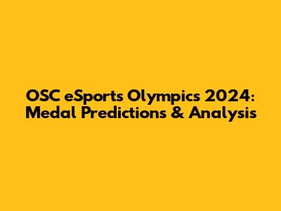 OSC ESports Olympics 2024: Medal Predictions & Analysis