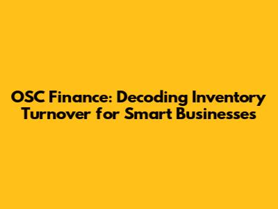 OSC Finance: Decoding Inventory Turnover For Smart Businesses