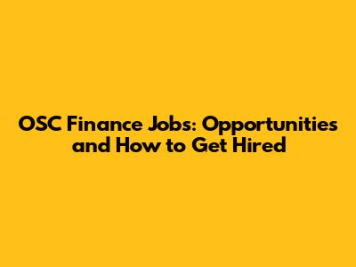 OSC Finance Jobs: Opportunities And How To Get Hired