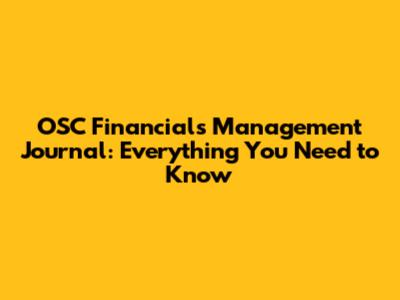 OSC Financials Management Journal: Everything You Need To Know
