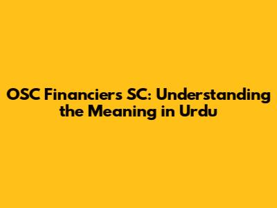 OSC Financiers SC: Understanding The Meaning In Urdu