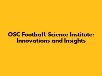 OSC Football Science: Innovations & Insights