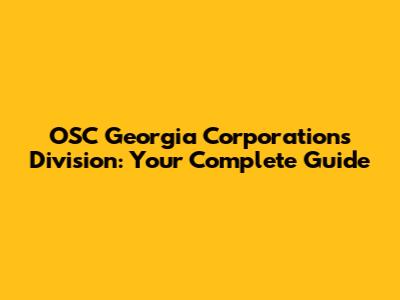 OSC Georgia Corporations Division: Everything You Need