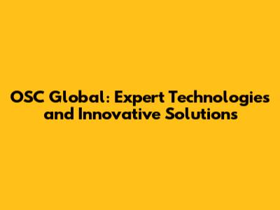 OSC Global: Expert Technologies And Innovative Solutions