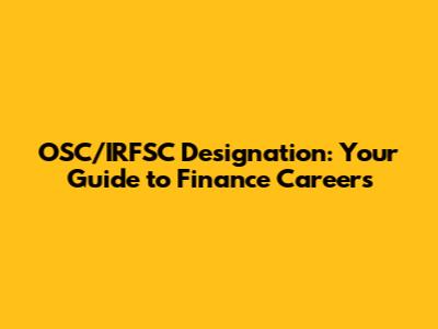 OSC/IRFSC Designation: Your Guide To Finance Careers