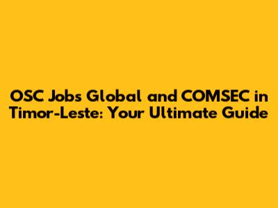 OSC Jobs In Timor-Leste: Your Global Career Path