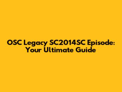 OSC Legacy SC2014SC Episode: Your Ultimate Guide