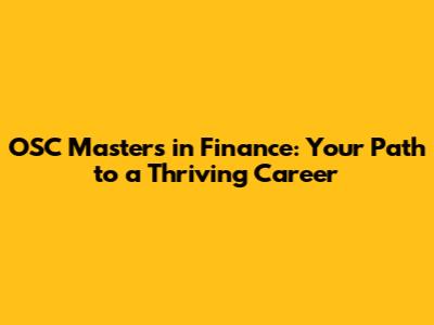 OSC Masters In Finance: Your Career Booster