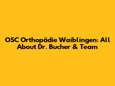 Hey guys! Ever wondered about the best orthopedic care in Waiblingen? Let's dive deep into OSC Orthopädie Waiblingen, focusing on Dr. Bucher and his amazing team. This isn't just another medical article; it's your friendly guide to understanding why OSC Orthopädie is a top choice for anyone needing orthopedic expertise. So, grab a coffee, and let's get started!