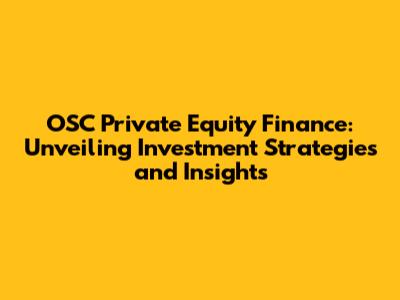 OSC Private Equity Finance: Investing Strategies & Insights