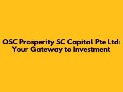 OSC Prosperity SC Capital Pte Ltd: Your Gateway To Investment