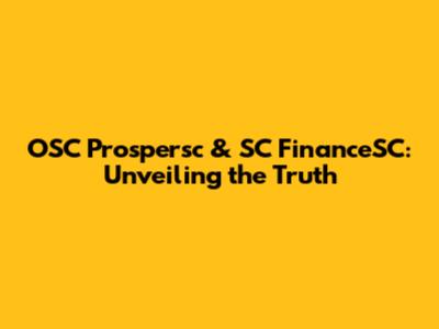 OSC Prospersc & SC FinanceSC: Unveiling The Truth