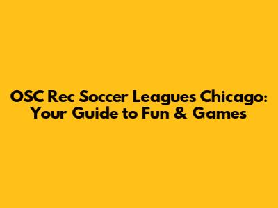 OSC Rec Soccer Leagues Chicago: Your Guide To Fun & Games