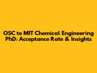 OSC To MIT ChemE PhD: Acceptance Rate & Insights