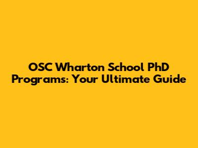 OSC Wharton School PhD Programs: Your Guide