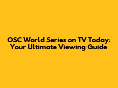OSC World Series On TV Today: Your Ultimate Viewing Guide