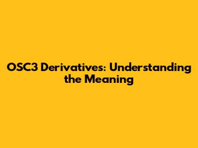 Hey guys! Ever stumbled upon the term "OSC3 derivatives" and wondered what on earth it means? Don't worry, you're not alone. It sounds super technical, right? Well, buckle up, because we're going to break down the meaning of OSC3 derivatives in a way that's easy to grasp. Think of this as your friendly guide to demystifying those complex financial terms. We'll dive deep into what these derivatives are, why they matter, and how they function in the vast world of finance. So, grab a coffee, get comfy, and let's get started on unraveling this financial puzzle together. We'll make sure you walk away feeling way more informed and less confused. This isn't just about definitions; it's about understanding the implications and the real-world applications that might even affect you, directly or indirectly. We aim to equip you with the knowledge to navigate these topics with confidence, turning potentially intimidating jargon into something accessible and even interesting.