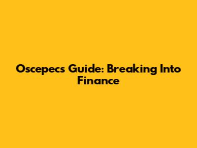 Oscepec's Guide: Breaking Into Finance