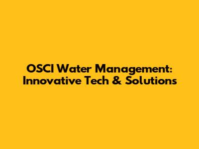 OSCI Water Management: Innovative Tech & Solutions