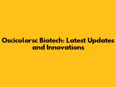 Oscicolorsc Biotech: Latest Updates And Innovations