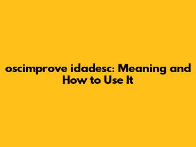 Oscimprove Idadesc: Meaning And How To Use It