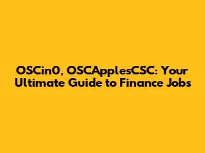 OSCin0, OSCApplesCSC: Your Guide To Finance Jobs