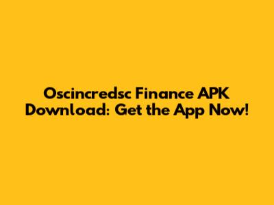 Oscincredsc Finance APK Download: Get The App Now!