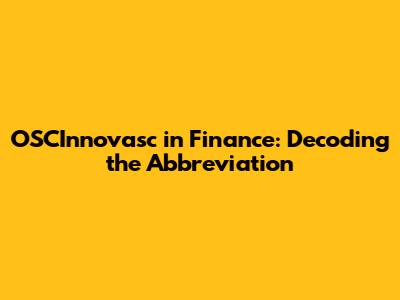 OSCInnovasc In Finance: Decoding The Abbreviation