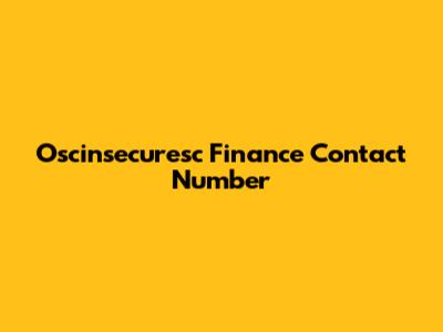 Oscinsecuresc Finance Contact Number
