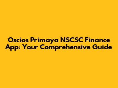 Oscios Primaya NSCSC Finance App: Your Comprehensive Guide