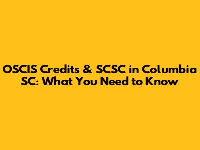 OSCIS Credits & SCSC In Columbia SC: What You Need To Know